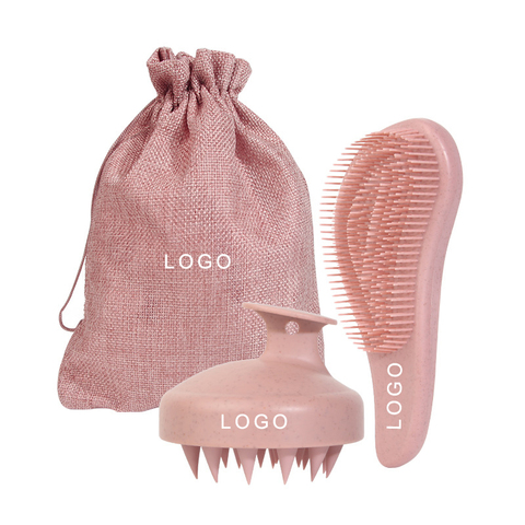 Set de Peine Desenredante de Trigo con Logotipo Personalizado y Cepillo Masajeador de Silicona para Cuero Cabelludo con Empaque en Bolsa